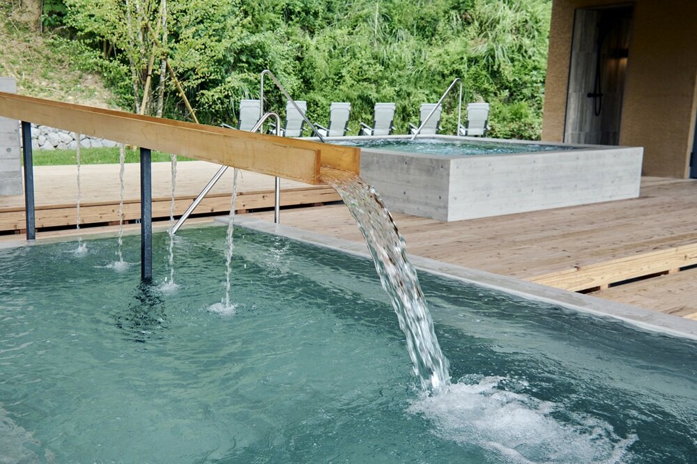 サウナ後は、里山に流れる水を使った2種の冷水浴で心地よくクールダウン。寒い時期には、ひとつが常温のかけ流し、もう一方が約40度の温水になる「季節変動型」になっており、季節問わず心地いい水を楽しめるのも魅力です。