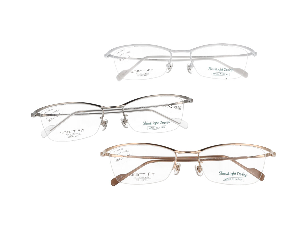 すっきりとしたデザインと、かけ心地を追求したベータチタンフレームが特徴。従来のスマートフィットを20~25%軽量化しています。「ずれる・痛い・跡がつく」の悩みを軽減するメガネです。