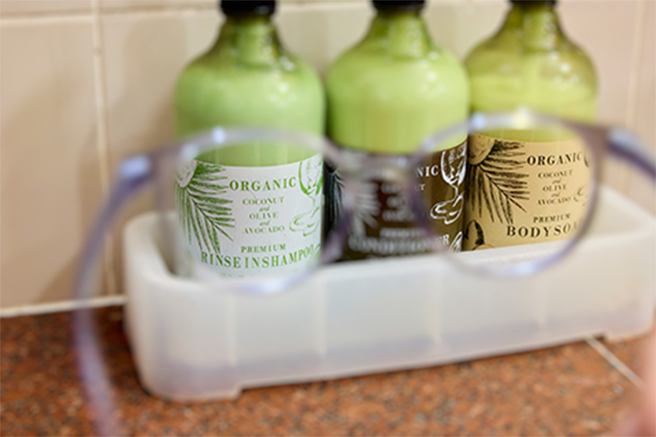 高温環境ではコンタクトレンズが変形し、視力に影響を及ぼす可能性がございます。また、お風呂に生息するアメーバがレンズに付着し、汚染されるリスクもございます。快適で安全なご利用のために、お風呂・サウナ内では専用メガネの着用をお勧めいたします。